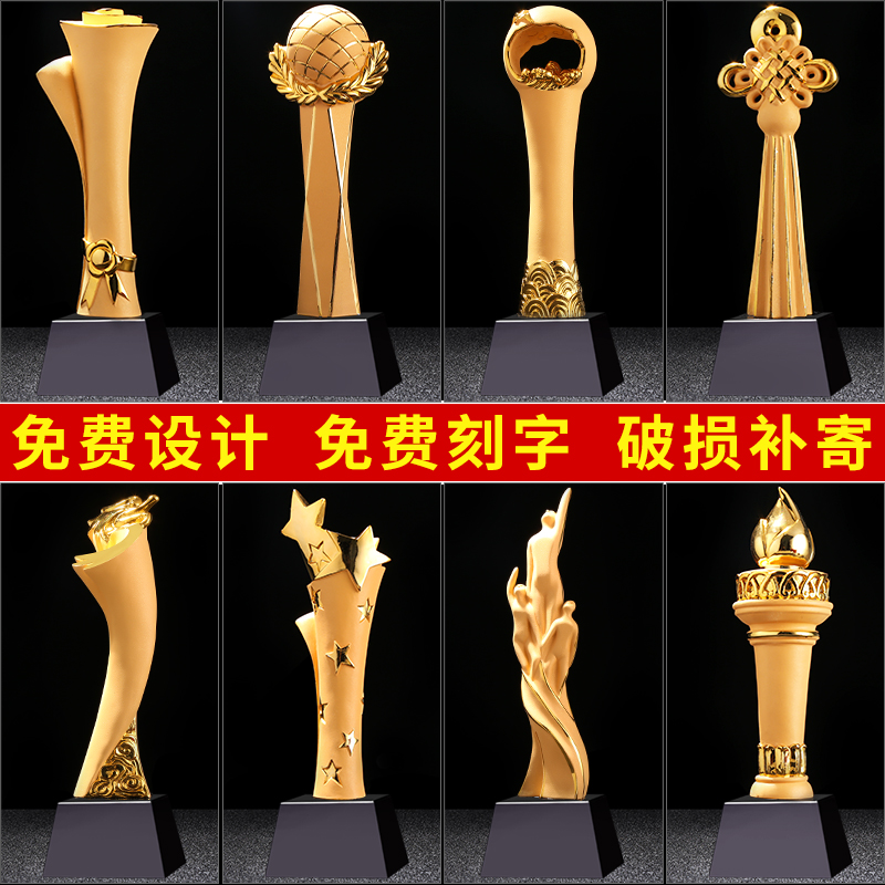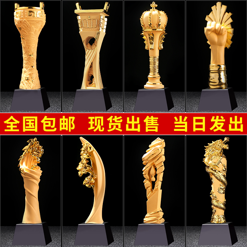 獎杯定制創意定制公司活動紀念品年會頒獎禮品新款絨沙金鍍金獎杯