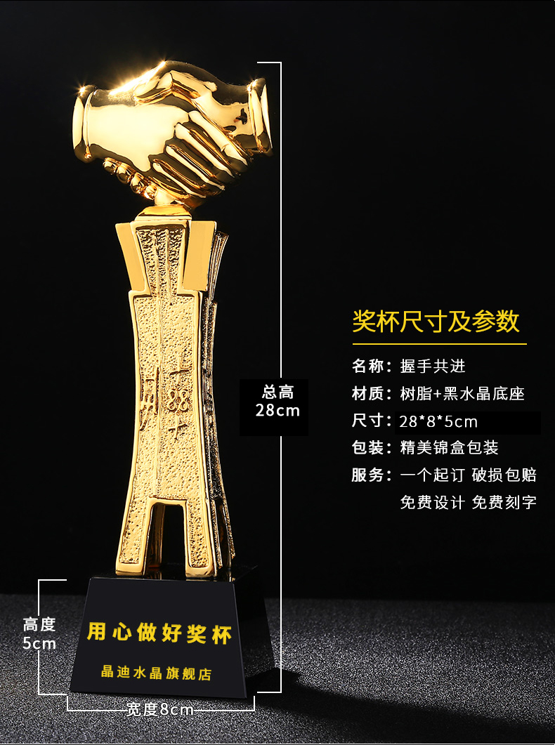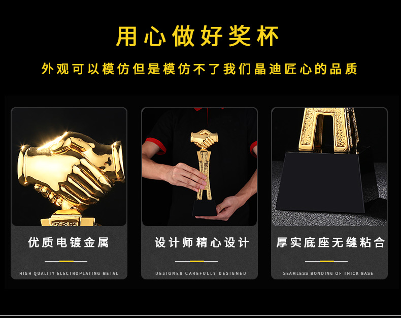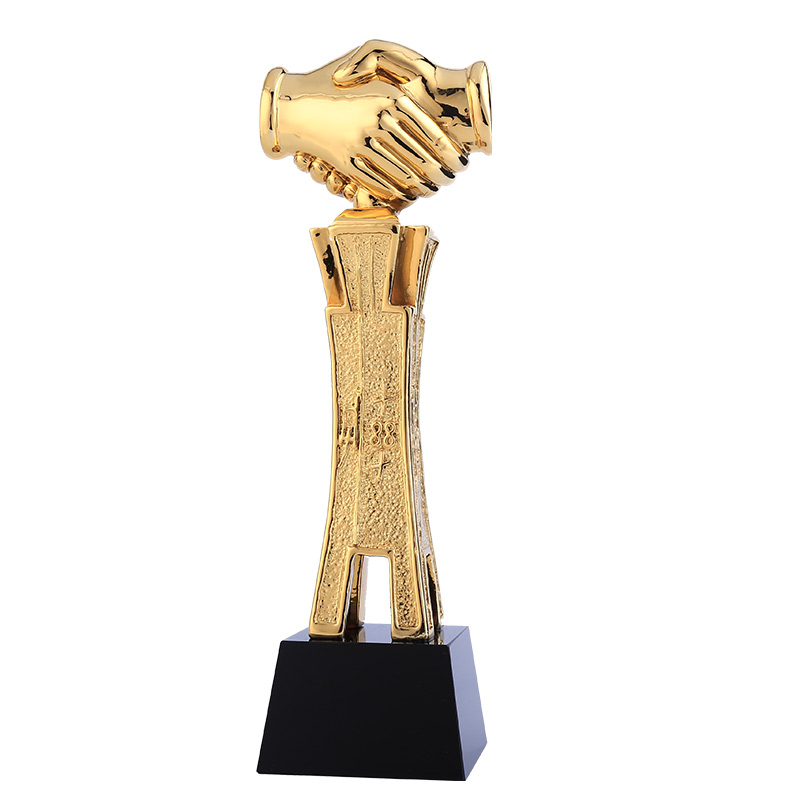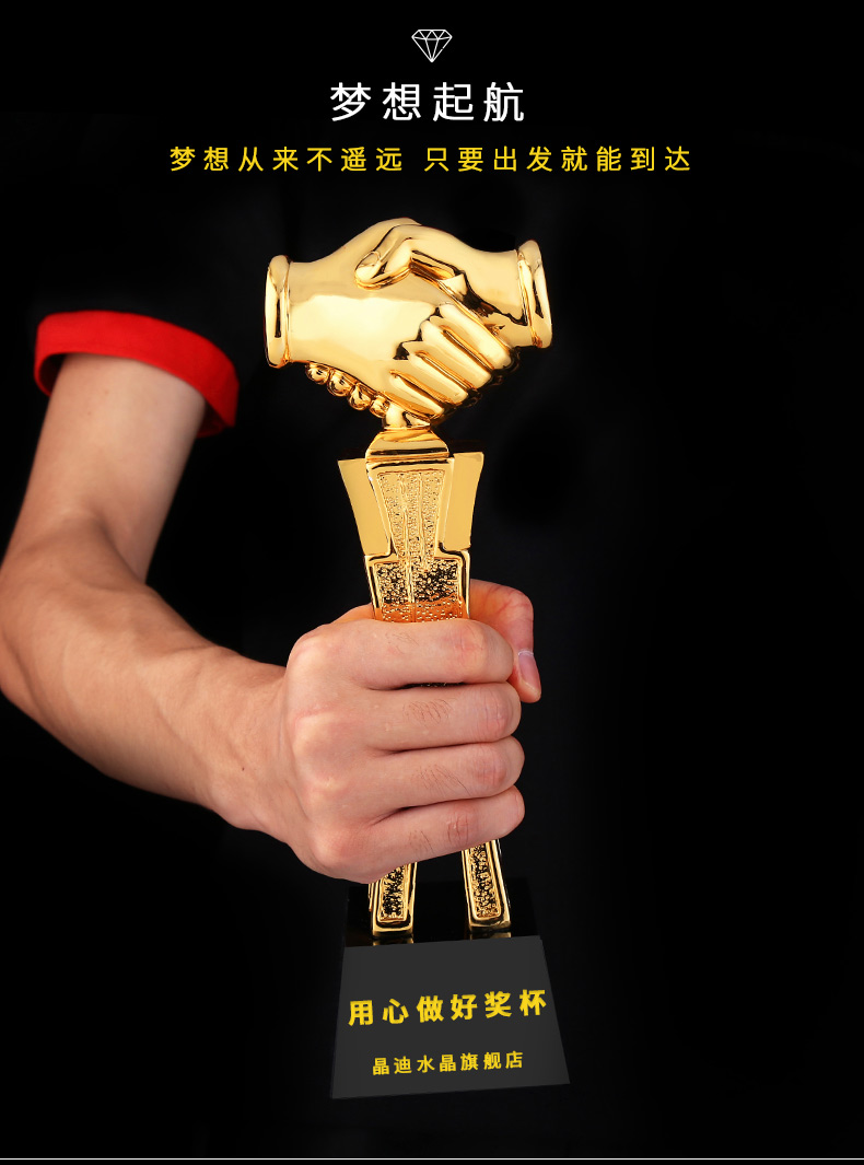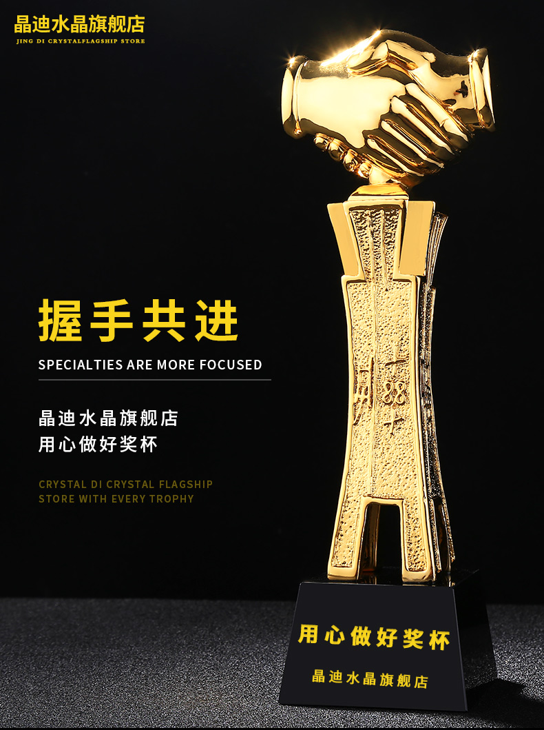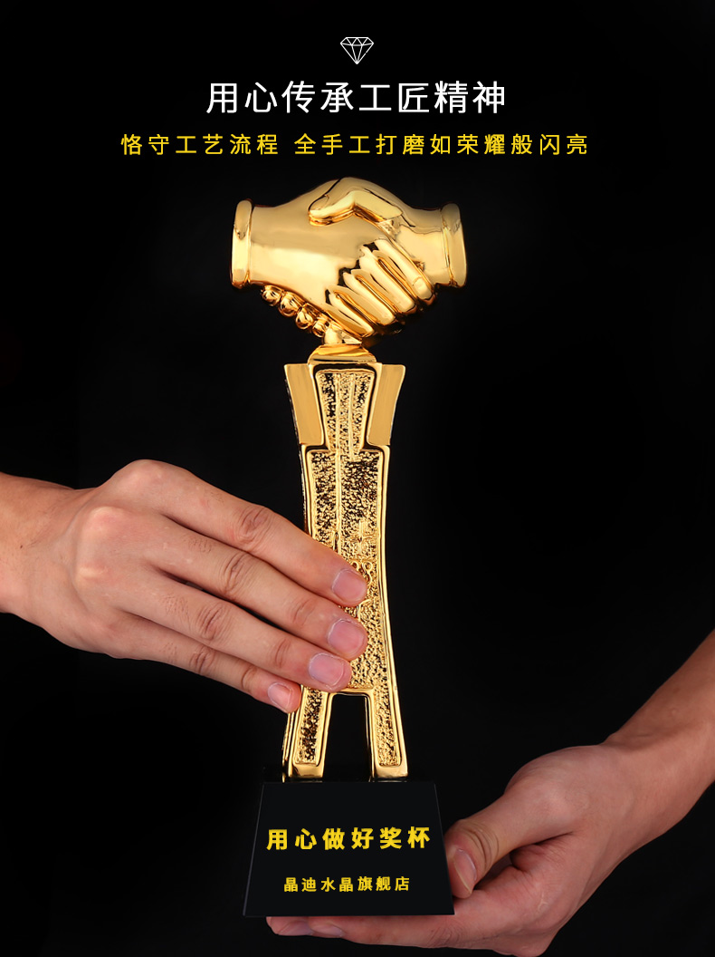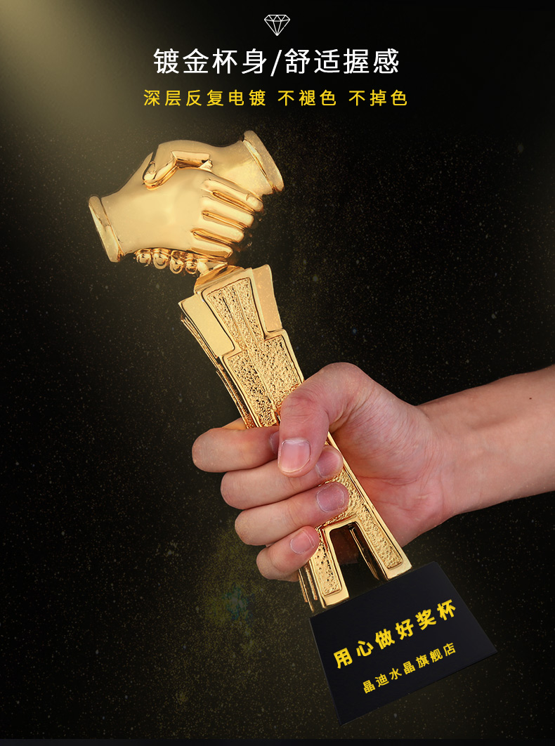 握手共進 鍍金獎杯 創意獎杯專業定制 企業員工頒獎禮品訂制