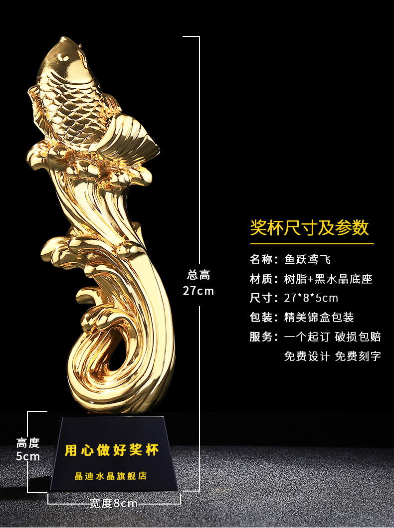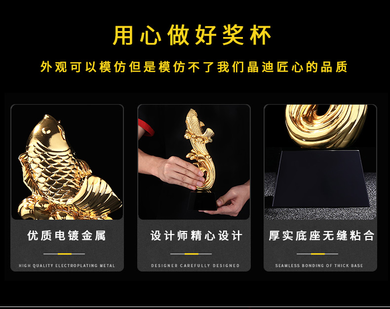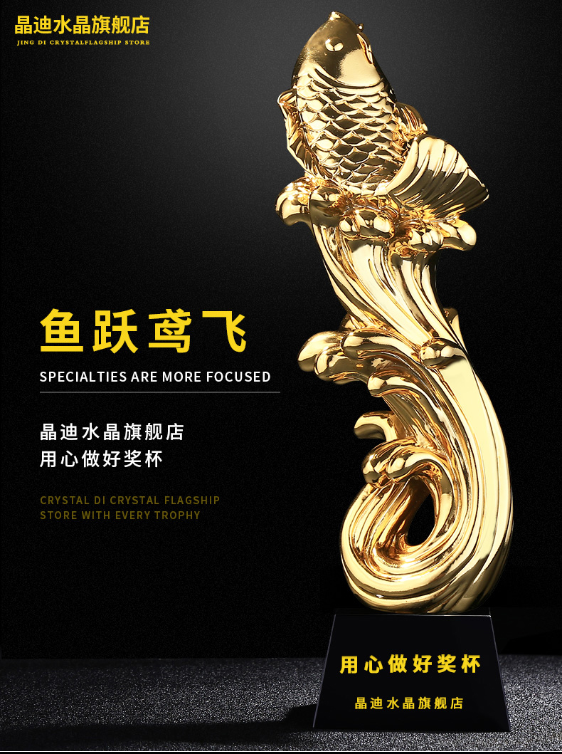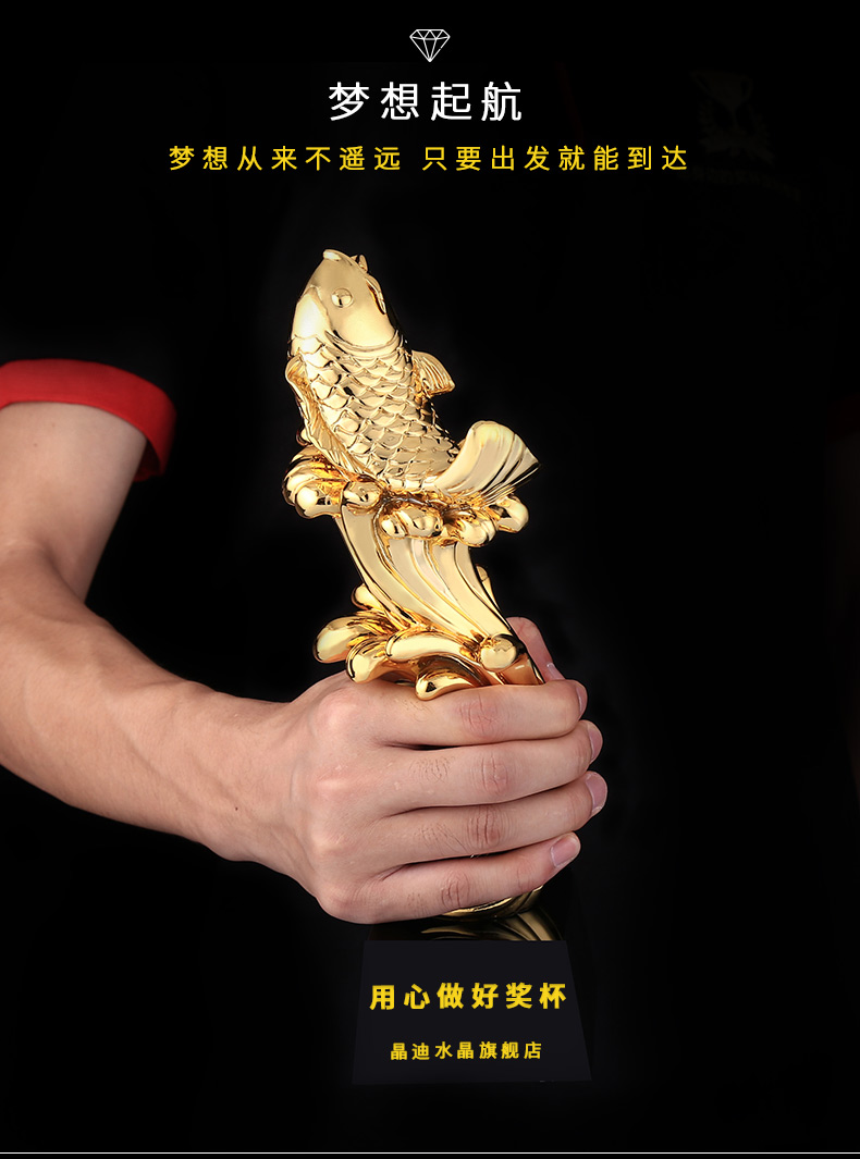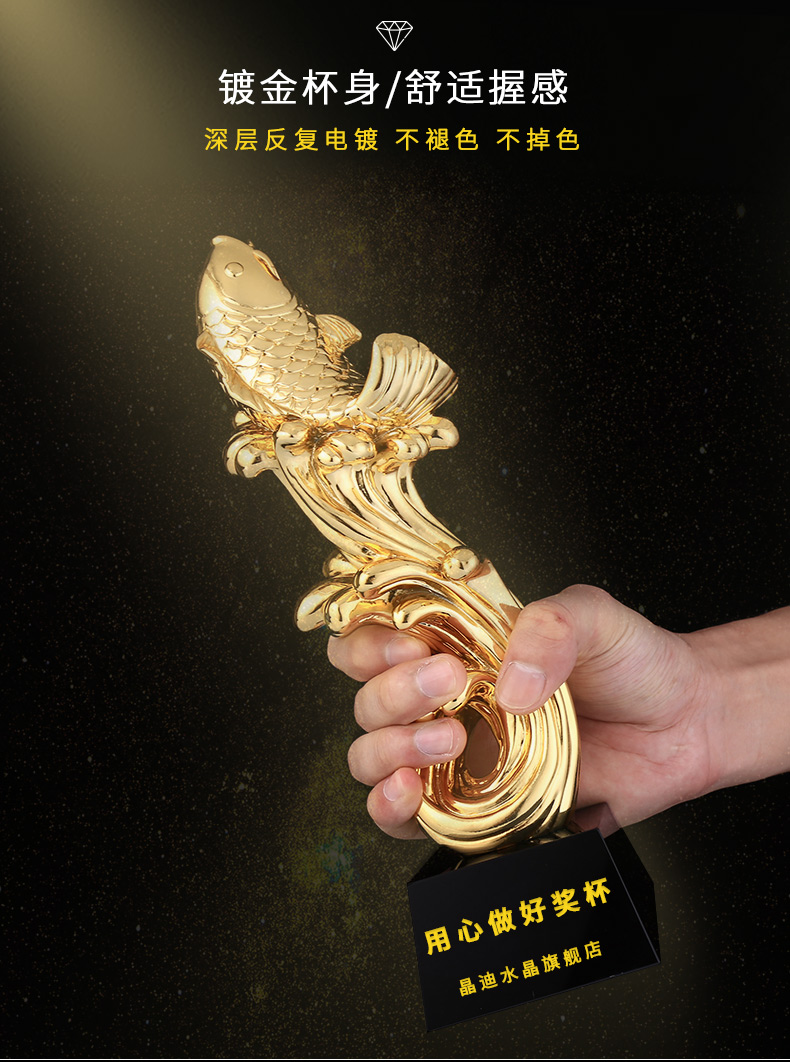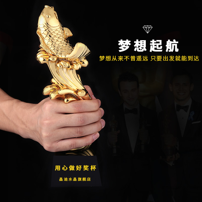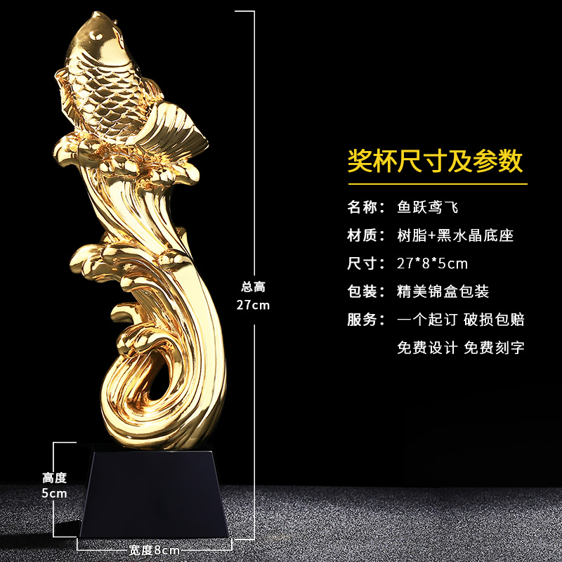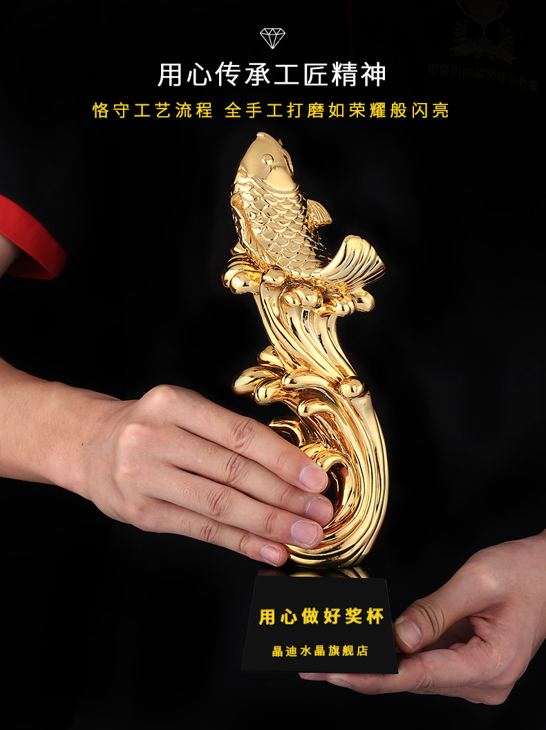 魚躍鳶飛 鍍金獎杯 創意獎杯專業定制 企業員工頒獎禮品訂制